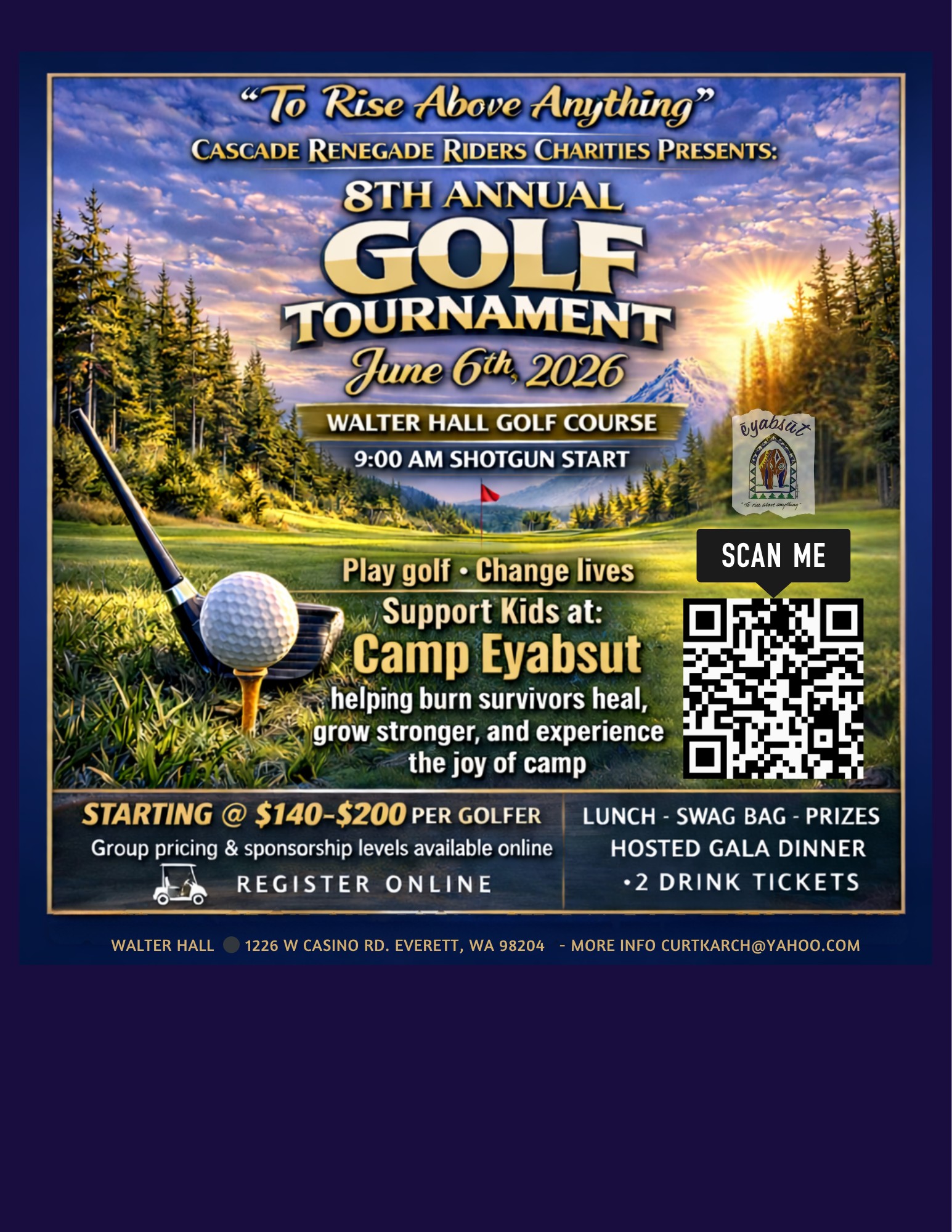 Register today for the 8th Annual Golf Tournament to support Burned Survivors for Camp Eyasbut.