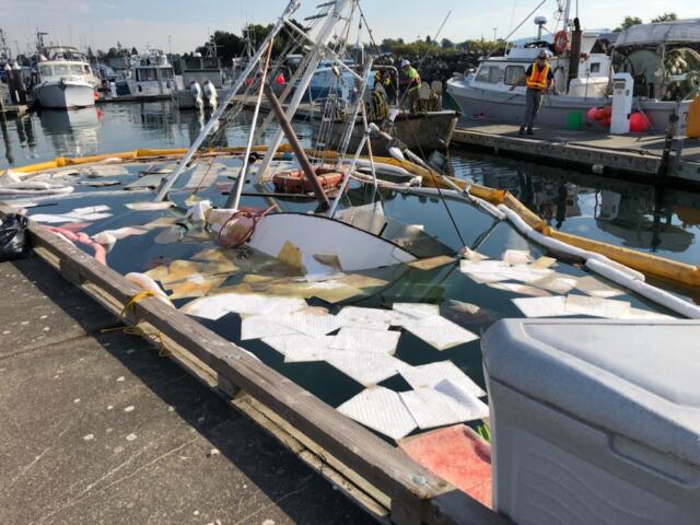 BELLINGHAM, Wash. – Cleanup is underway after a boat sank in Squalicum Harbor earlier this week.